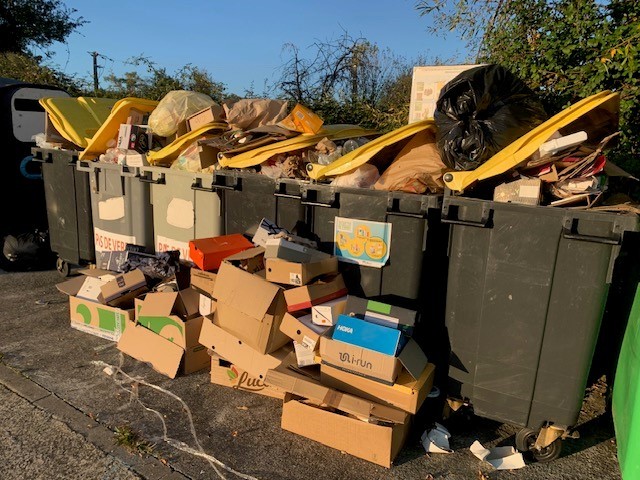 D'autres dépôts sauvages ont eu lieu sur une plate-forme de collecte et aucun effort de tri n'a été fait sur une autre alors que la colonne à carton n'est pas pleine.