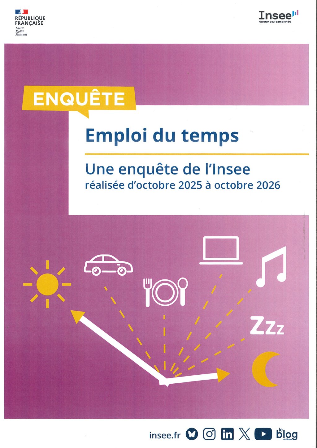 années 2025 et 2026 une enquête sur le thème de l'emploi du temps.