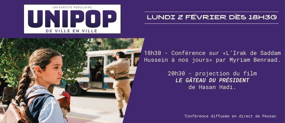 Conférence en visio par Myriam Benraad sur "l'Irak de Saddam Hussein à nos jours" + Projection du film "Le gâteau du président".