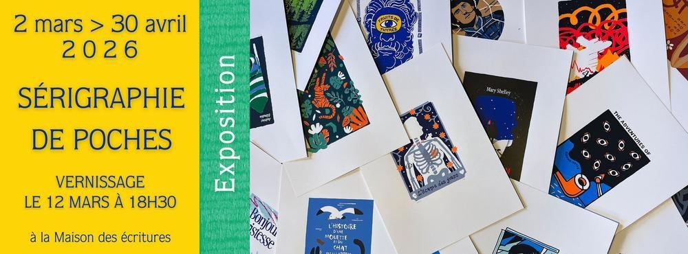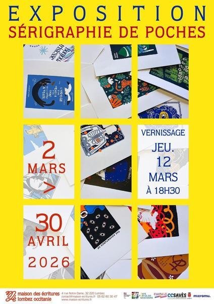 Exposition "Sérigraphie de poches " du 2 mars au 30 avril à la maison des écritures à Lombez. Vernissage le 12 mars à 18h30